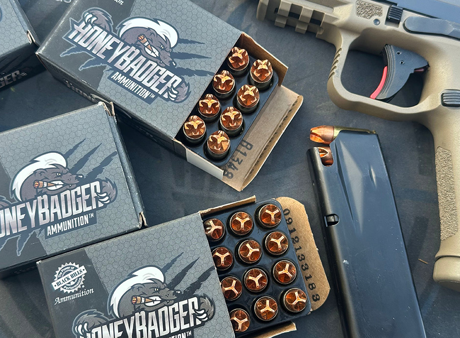 Also, and this is no small thing, the new Fluid Transfer Monolithic bullets designed by Lehigh Defense and used in the Black Hills Ammunition “Honeybadger” loads, do not need to expand to do the same damage as older hollow-point bullets. While relatively new (decade plus) the street results from law enforcement agencies using them has been impressive.