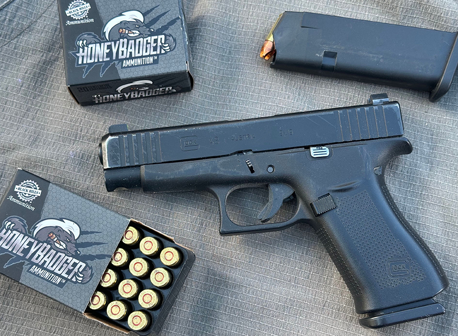 For my GLOCK 48, the pistol is loaded with 10+1 rounds and a spare magazine has 10 rounds for a total of 21. A fresh box of Black Hills premium “Honeybadger” ammo will run about $35. That’s a $35 investment once a year for a tool that could save my life or that of my loved ones. Should that ammunition ever be called into question, the folks in South Dakota can defend their manufacturing practices, not me.