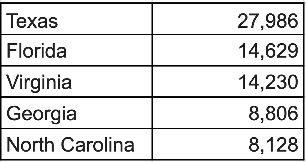 • Top-5 States for FBI NICS Long Gun Checks:   TX, FL, PA, CA, VA