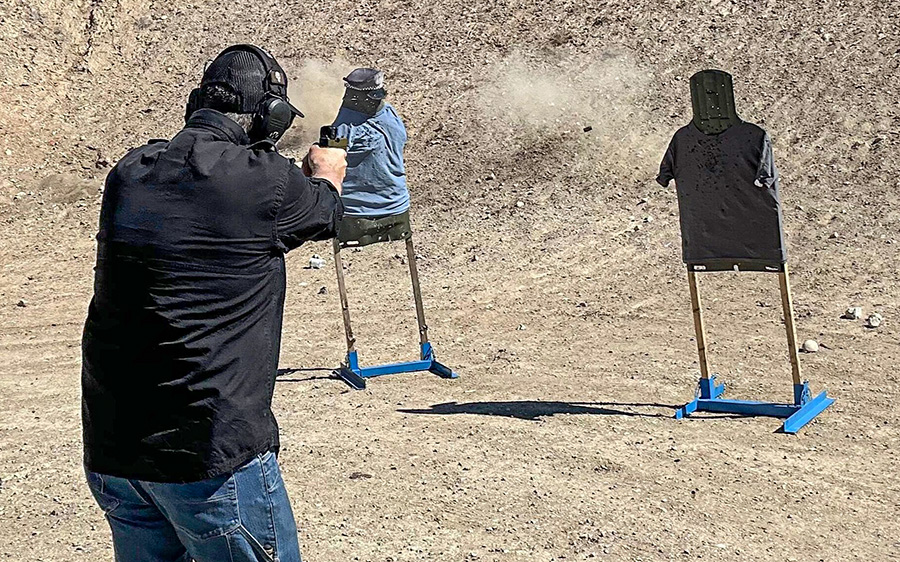 However, for the sake of argument, let’s just say the dot disappears and you don’t have extra-tall back up sights. There is a simple solution called the “Guillotine Technique.” This is where you take the top edge of the optic housing and use it to “cut off” the head of the humanoid target. If you put the head on top of the optic housing and press the trigger, without moving the gun all over the place, your hits will go into the upper chest of the silhouette.