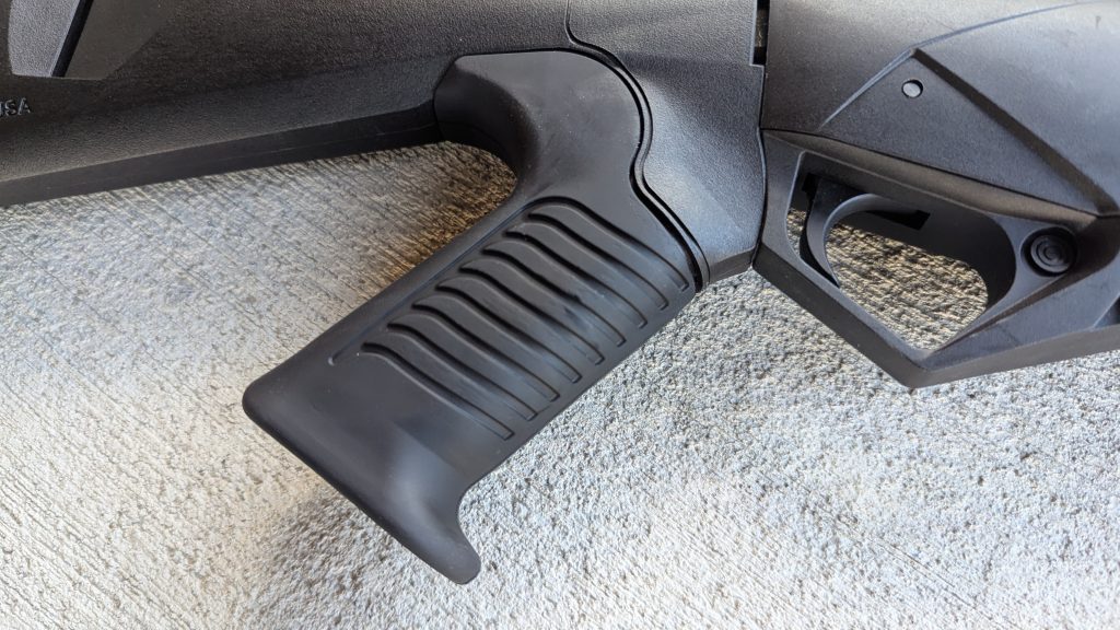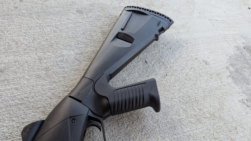 The Urbino stock is made from injection-molded glass-filled nylon. It’s durable, but also lightweight, and helps keep the gun balanced. The pistol grip is broad and reminds me of the SAW grip, a grip I love for reasons I don’t quite understand. It’s also rubberized to help reduce wrist fatigue.