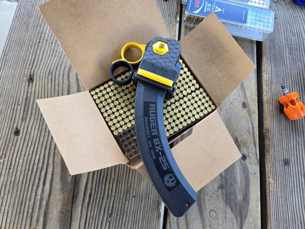 I’ve literally spent decades loading mags by hand. I was certainly aware of mag loaders, but hadn’t really tried any until recently. Once I did I found myself wondering why I waited so long to do it. I have a few loaders now for AR’s, AK’s, and various pistols. When I got a Franklin Amory F22 pistol with binary trigger I knew I needed something for the 10/22 as well. After looking around I came across the SPEED BEEZ Lever Loader and decided to give it a shot.