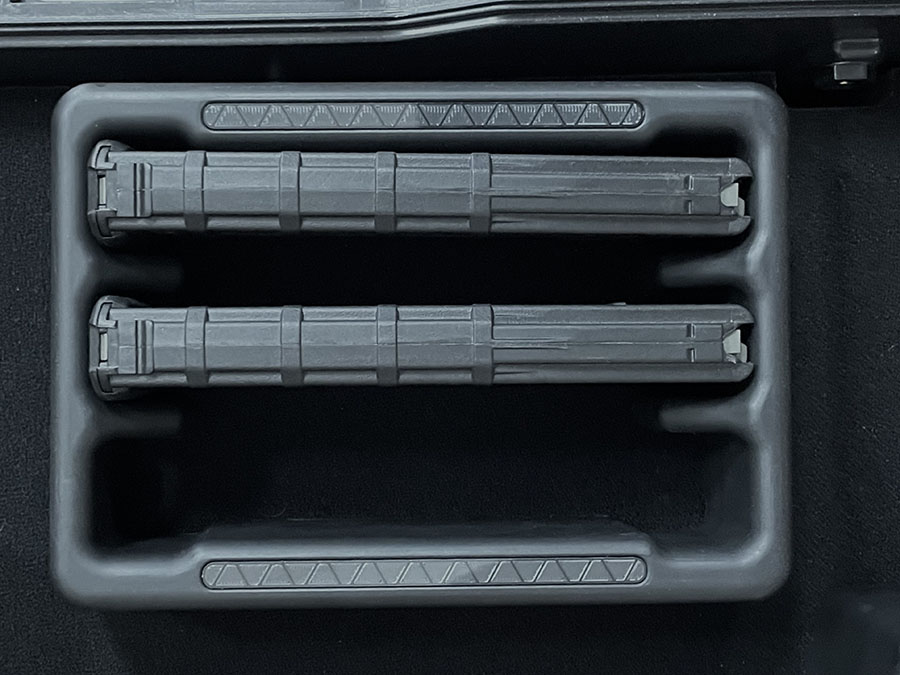 Another storage block available is an AR-15 30-round magazine rack. This is a great addition to the set, as it allows for secure storage of empty or loaded AR-15 magazines. There is no need to worry about them shifting around in the case, and it’s not necessary to carry them in another tote.