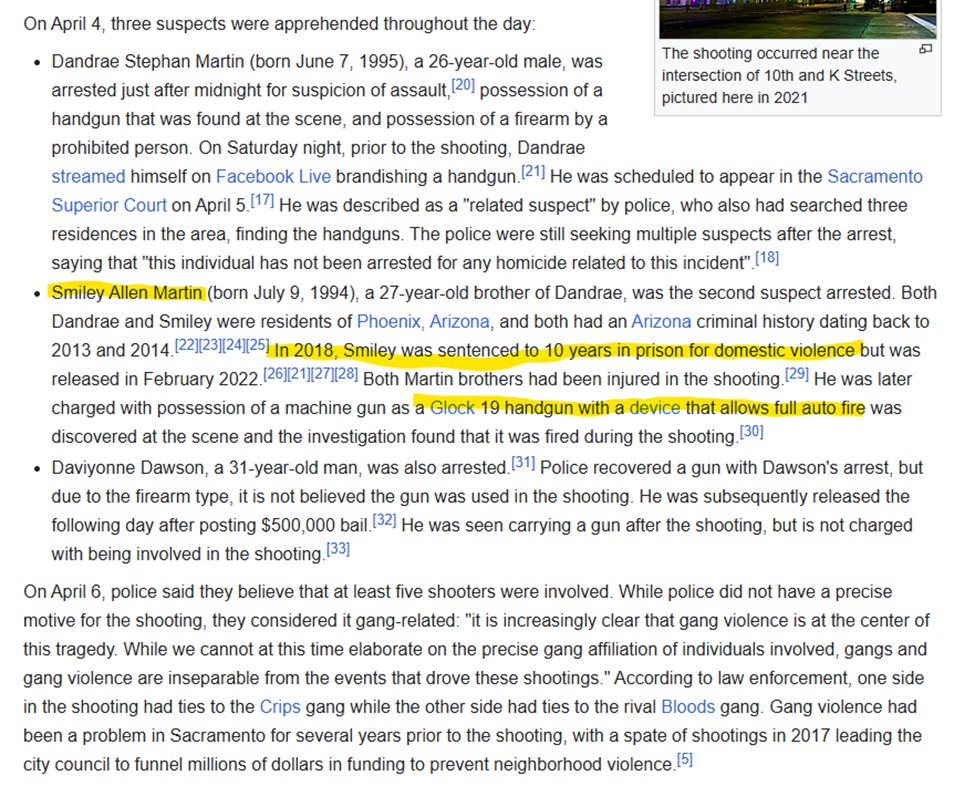 That criminal, a prohibited person, then illegally modified a GLOCK he could not legally possess and used it to murder his rivals in a gang-related shooting. While several suspects were involved in the Sacramento shooting, only one had a modified GLOCK with a full auto switch: Smiley Allen Martin.