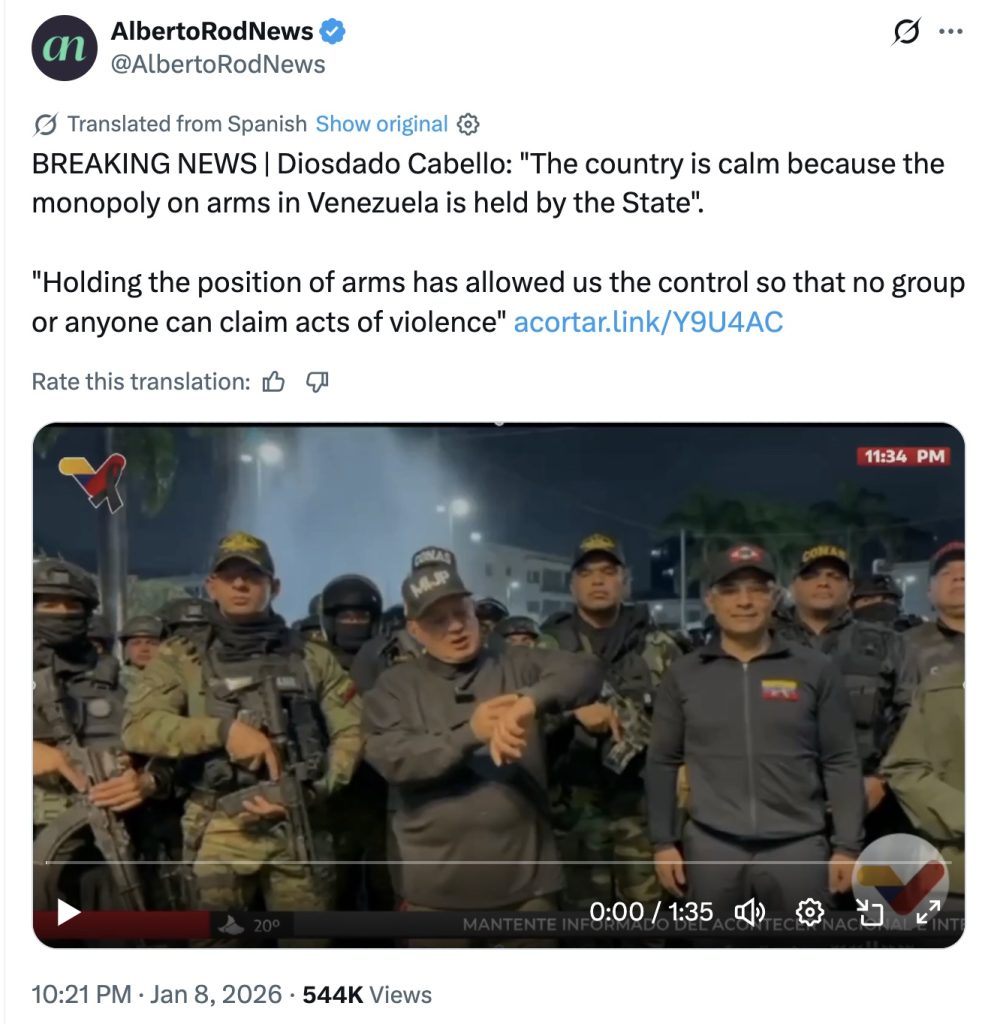 BREAKING NEWS | Diosdado Cabello: “The country is calm because the monopoly on arms in Venezuela is held by the State”. “Holding the position of arms has allowed us the control so that no group or anyone can claim acts of violence”