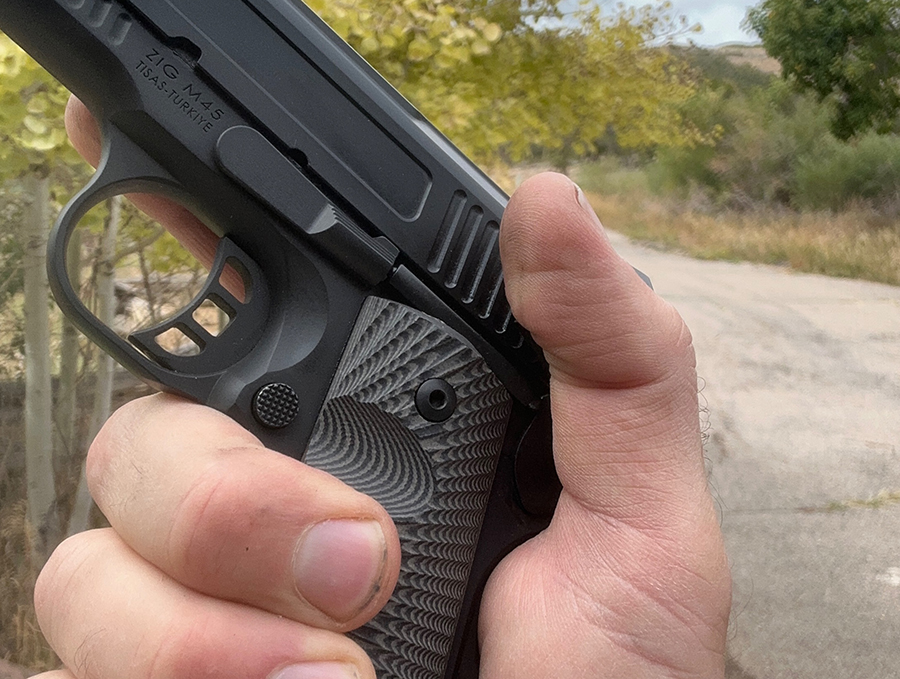 If the 1911 design is new to you, you need to practice not only drawing and disengaging the safety, you need to also practice reengaging it every time you put the gun back in the holster. I’m going to say that at least 500 correct presentations are needed for that skill to be mastered and to become a subconscious action that you will perform under high stress.