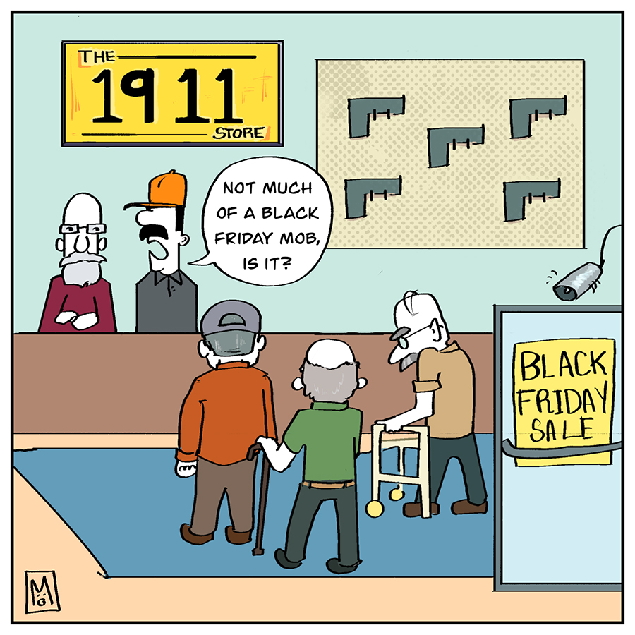 1. That’s funny Geoff. Given that a 1911 only store would probably be a really quiet place, except maybe for the sound of the occasional person muttering ‘what day is this?’ as they open their ‘day of the week’ medication container.