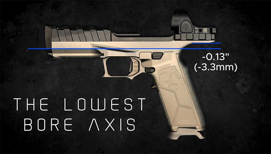The Dragon lowers the bore axis to -3.3mms. That’s right, it’s a semi-auto pistol that places the barrel below the grip spur. While I haven’t shot the gun to confirm it, the idea of this, and any low bore axis gun is that recoil is directed linearly back into the wrist rather than rearward and upward.