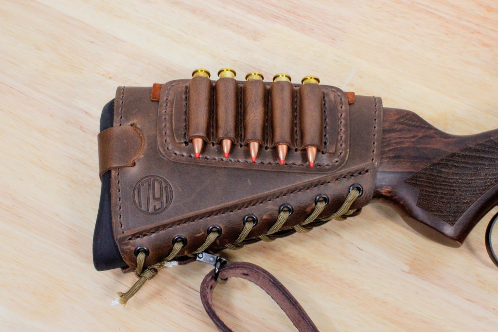 • 1791 Gun Leather HUNT Butt Cuff Ammo Holder: Impressive leather craft and stitching. All the lines are sharp. But most importantly, it provides a more comfortable cheek weld and holds five extra rounds of 30/30. This, coupled with the quiver, gives me an additional 11 rounds at my immediate disposal.