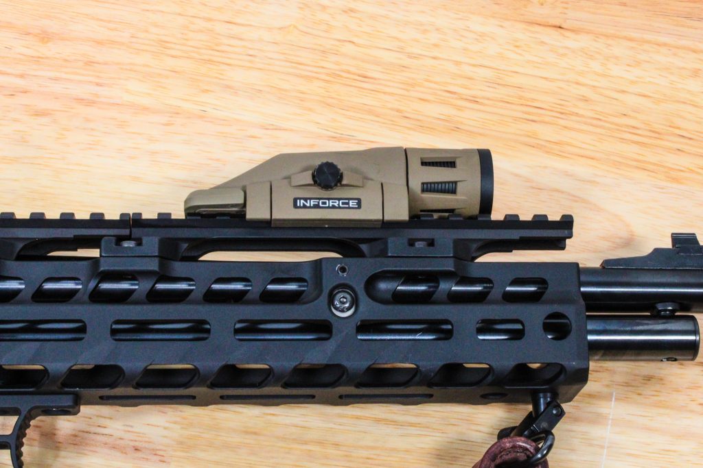 • Inforce WML: a weapon-mounted light is another must for a modern rifle. The Inforce WML’s unique design lends itself well to riding on the top rail of the gun. With a C-grip, I can easily actuate the light’s rear toggle.