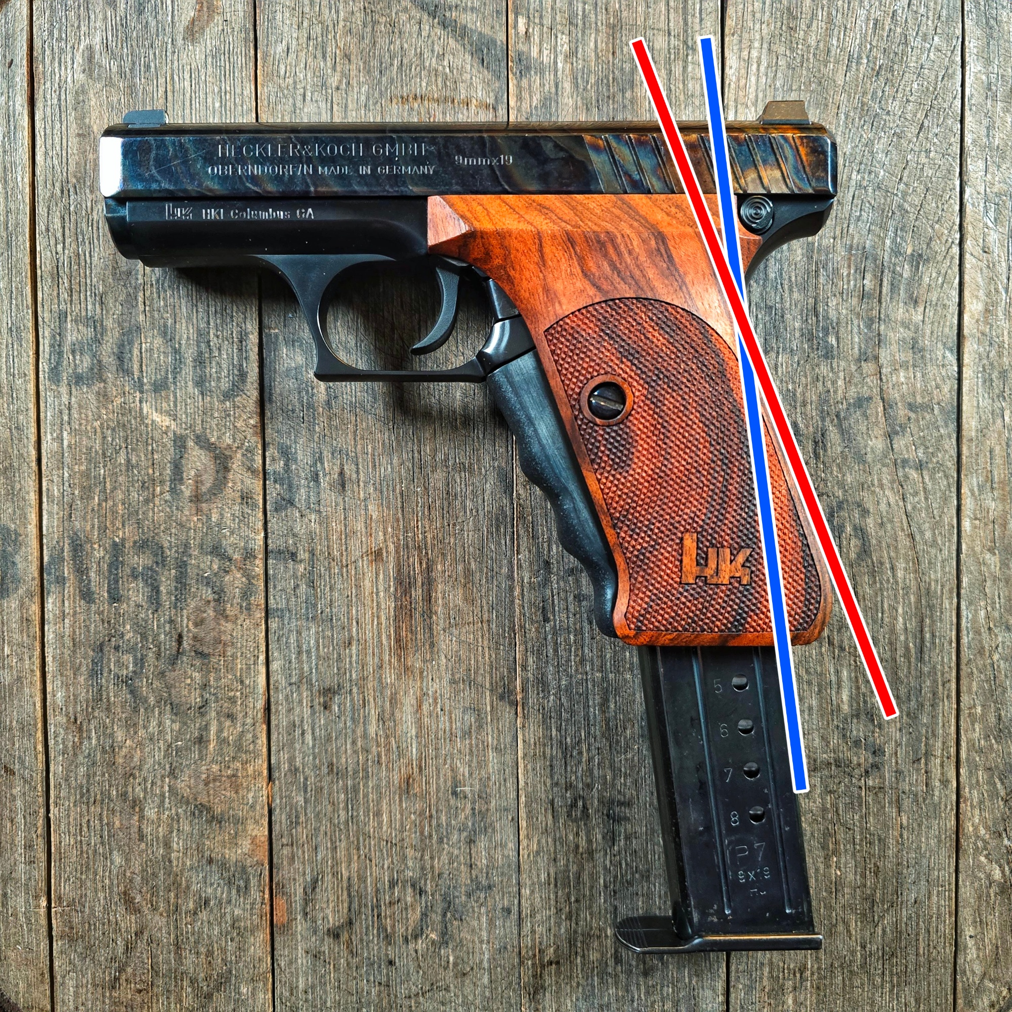 At the same time, the P7’s magazine doesn’t follow that grip angle. It inserts more vertically (more perpendicular to the bore axis). Easily overlooked, this is actually a non-trivial, quite functional design feature.