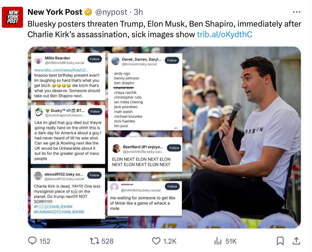 Meanwhile the comments section of yesterdays Huffpo articles contain such gems as: “Trump had Kirk killed because he wouldn’t drop the Epstein files” and “this was a patsy to false flag liberals for a crime we’d never commit” or the increasingly popular among liberals hyper-antisemitic take: “Israel had him killed because he was starting to turn against their genocide.”