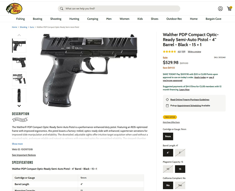 As you can see above, a standard PDP compact with a 15-round magazine retails for $530 on Bass Pro’s website.