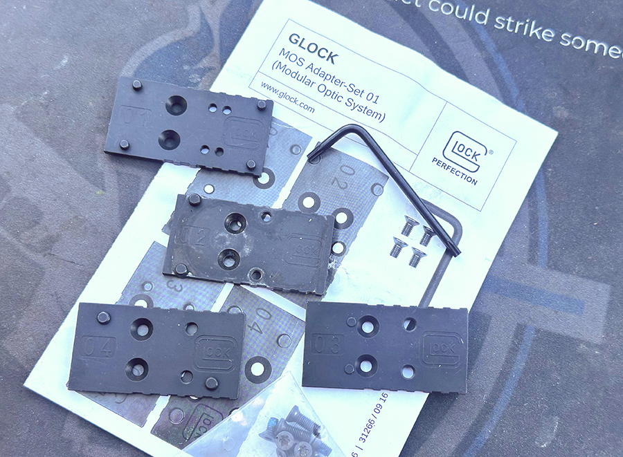 For instance, if you were to purchase a GLOCK Gen 4 or Gen 5 “MOS” (modular optic system) pistol, you would receive a 4-pack of mounting plates, numbered “01” to “04” that would allow you to install optics that had the; Docter/Meopta, Trijicon, C-More, or Leupold footprints.