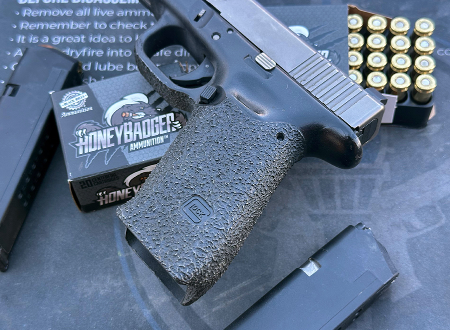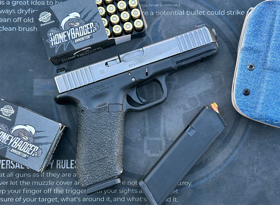 For my range time I loaded up a can of ammo with a bunch of Black Hills Honeybadger, my go-to defensive load. My pal at XTech Tactical sent me a couple of their G17 magazines to try out last summer and I’ve been working with them since. These mags have what they refer to as an “extra power” spring. A GLOCK mag loading tool is good to have to coax the last few rounds in there. Having just checked their website, I see that XTech is now offering their own loading tool. Good for them.