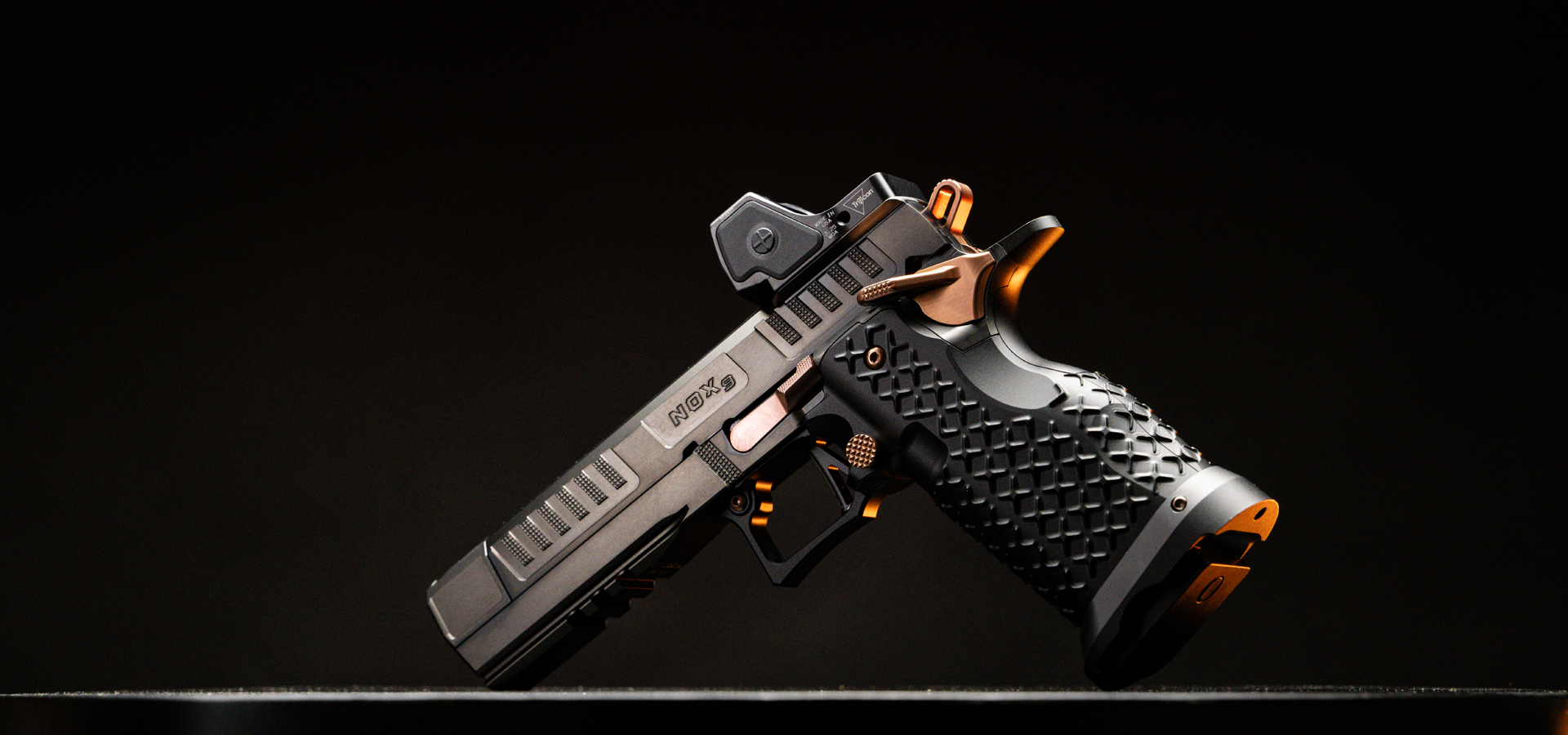 Precision meets power with the release of the Nox 9, the newest innovation from Jacob Grey Firearms. Built on a 4140 pre-hardened steel frame and packed with Armored Billet fully CNC machined components, the Nox 9 is setting the bar for Jacob Grey to lead the way forward with a new standard of precision components, coatings, comfort, recoil management and new revolutionary designs.