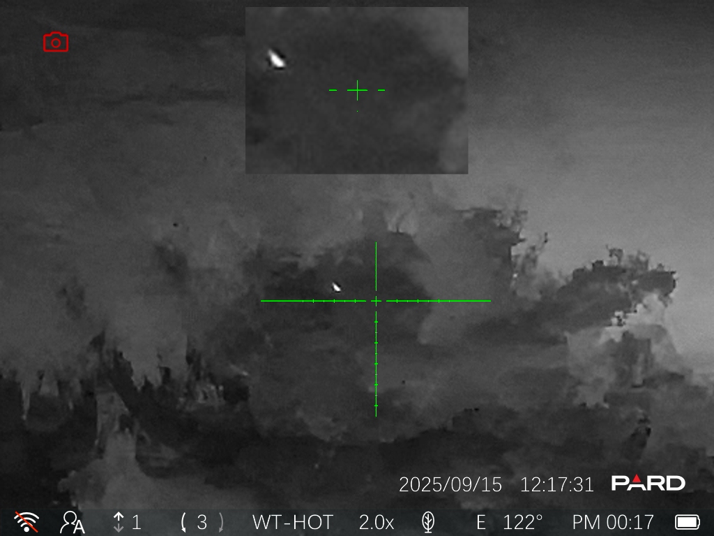 Seen above is White Hot image mode. That’s a rat in the tree to the left left and just up from the crosshair.