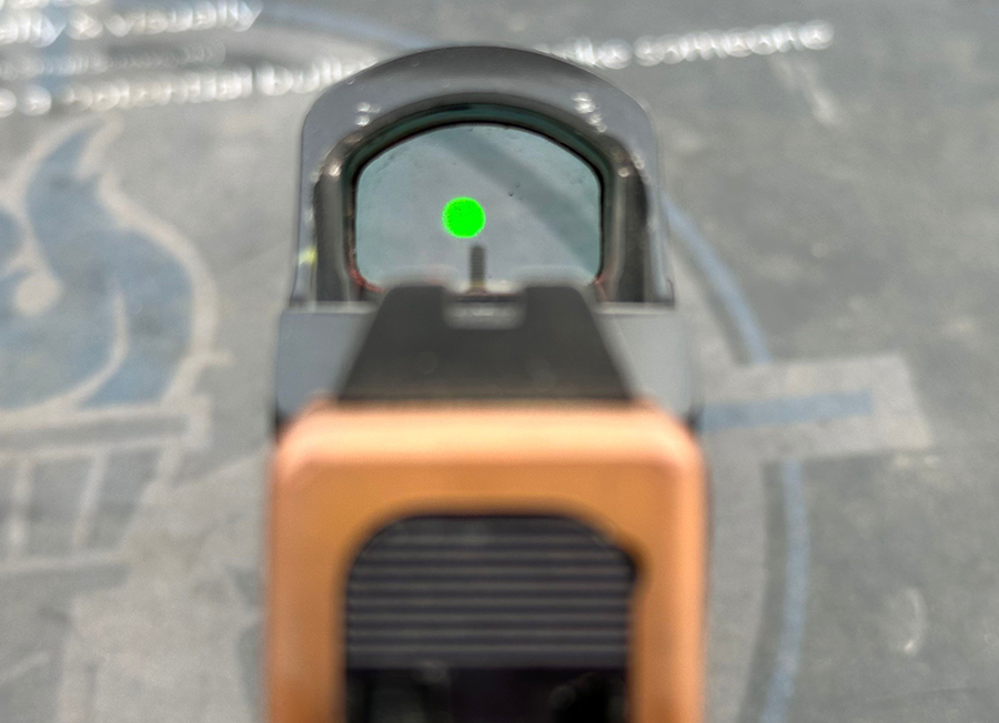What competition shooters learned decades ago when red dots were big, heavy, and expensive, was that the best way to use that setup was to put their focus on the target, draw their pistol, and the millisecond their brain perceived the aiming reticle to be on target, press the trigger. Rather than shifting their foveal vision focus from the dot to the target to the dot, we keep our focus on the target and when the illuminated reticle is perceived and becomes a part of the target picture, that is the “go code” for our brain to command our trigger finger to press.