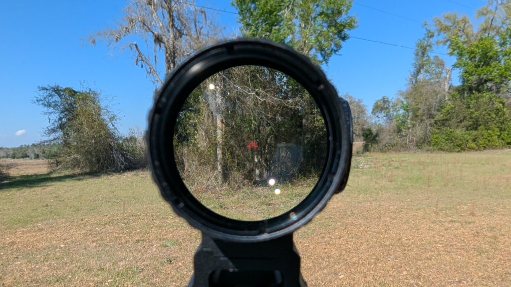 The reticle’s brightness makes it capable for those fast, close shots. You can get a glimpse of red and the target at close ranges and let the lead fly. For quick ready-up drills, the Paragon delivers acceptable speed and accuracy. It’s not a red dot, but it’s good enough to put effective rounds on target quickly at 10 to 25 yards.