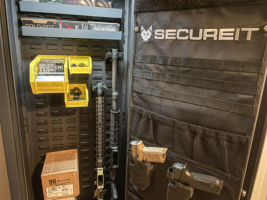 To wit: the SecureIt Agile Model 52 gun safe. It’s not fire rated. It doesn’t hold dozens of guns. It’s not heavy. What it is, however, is easy to put together, light enough to move to another location by yourself, flexible in its configuration possibilities and, yes, it keeps your guns and other stuff securely stowed away.