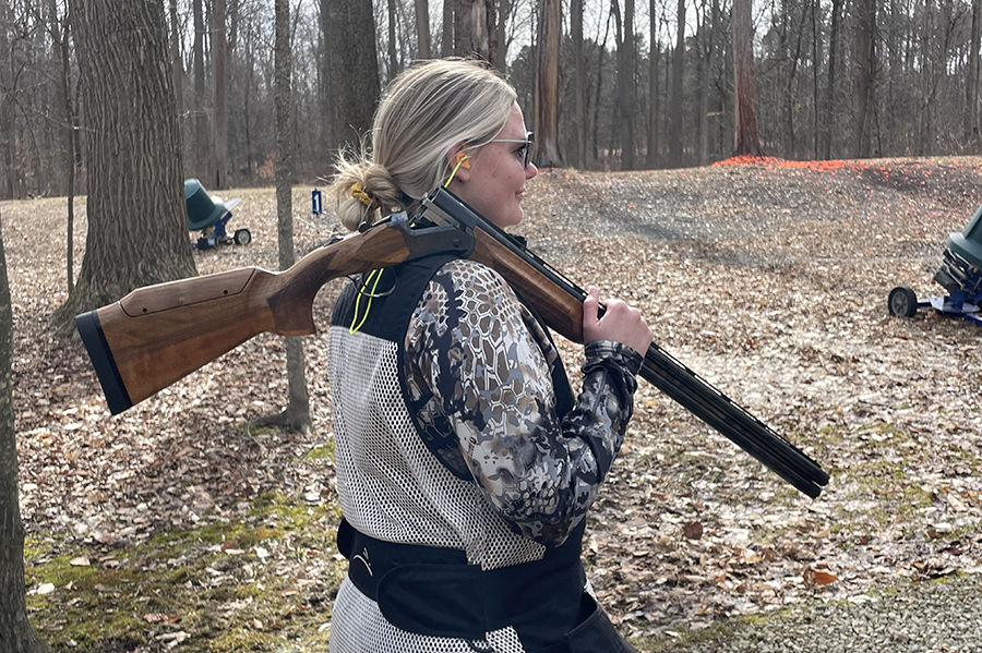 When we arrived at the hunt club, I showed her how to carry her shotgun when broken open.