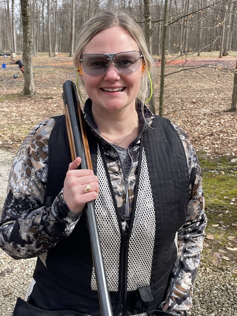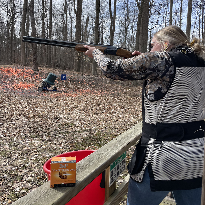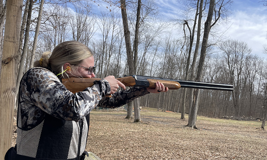 Next, Elizabeth used dummy rounds to practice loading, mounting, using the safety and unloading the shotgun. Practicing at home is a great way to teach someone how to handle a firearm. With no one else around, it’s easier to learn, ask questions and make mistakes.