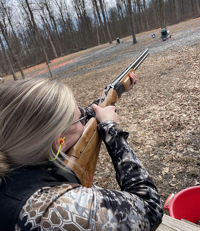 To begin, my friend Rick, who coaches shotgun shooting, came over to check how the Ladies Country shotgun fit Elizabeth. He also gave her a quick lesson on stance and how to mount the shotgun. After seeing where her cheek rested on the comb and how her pupil lined up with the rib, Rick decided no changes were needed. He said he might adjust it later when she feels more comfortable, but for now, it looked great.