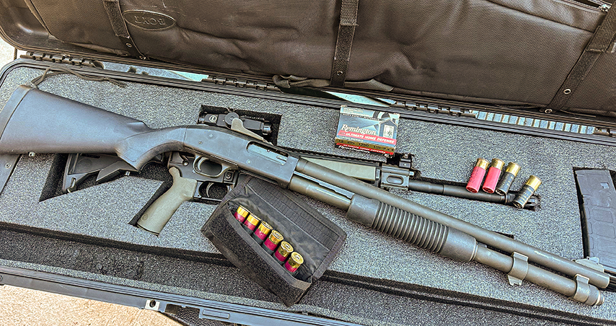 The specific gun in my Patriot Arsenal hardcase is the Mossberg 590A1. That is a personal choice as I carried both the Remington 870 and Mossberg 590A1 while a United States Marine. When I became a police officer, I used both models and over the years I have come to appreciate the feel and function of the 590. No, I would not feel handicapped with an 870, but I’m an adult and can choose whichever I please.