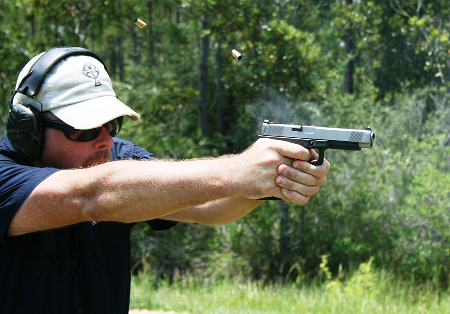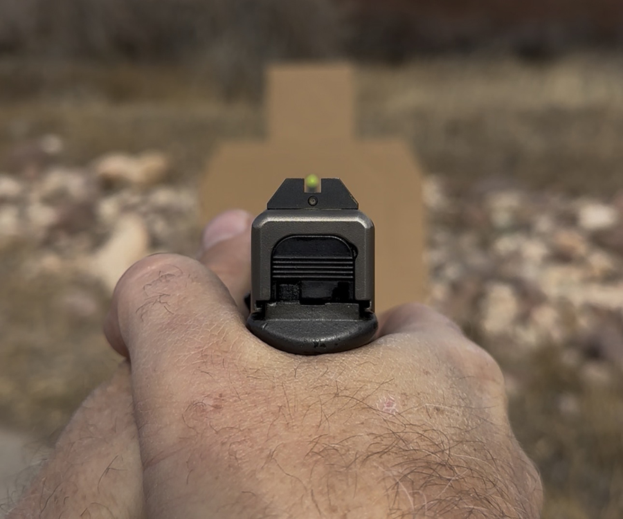 There are numerous fundamentals when it comes to handgun marksmanship, but it cannot be denied that aligning a clear front sight on the target while deliberately pressing the trigger are the most important. If you can hold the gun still, indexing the front sight on the target and simultaneously press the trigger without disturbing the sight picture, it doesn’t matter how your feet are configured, what your grip looks like, or how much or how little contact your finger has with the trigger. All that is required to hit a target with a single shot is the first two. Recoil management and follow-up shots are a different subject.
