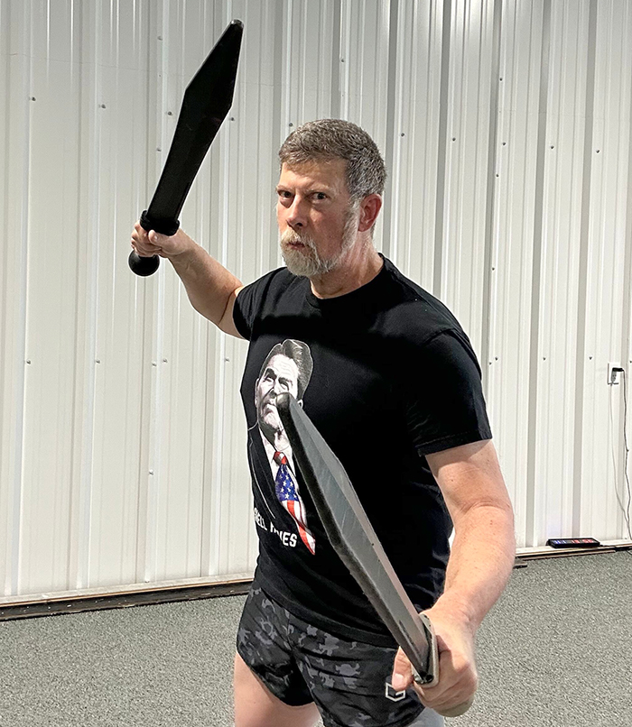 We now have a gladiator training routine that pairs like peas and carrots with our strength training regime. My strength training mentor, Matt Reynolds, fully endorsed the practice, with the caveat that it be conducted AFTER strength training, not before or rather than. The problem or misconception that many folks have is that mobility training is a substitute for the genuine voluntary hardship of resistance training, it is not. True strength training is Simple, Hard, Effective. It cannot be effective if it is not hard and it must be simple, not complicated, to be sustainable. As Matt likes to remind us, “Strength makes everything better.”