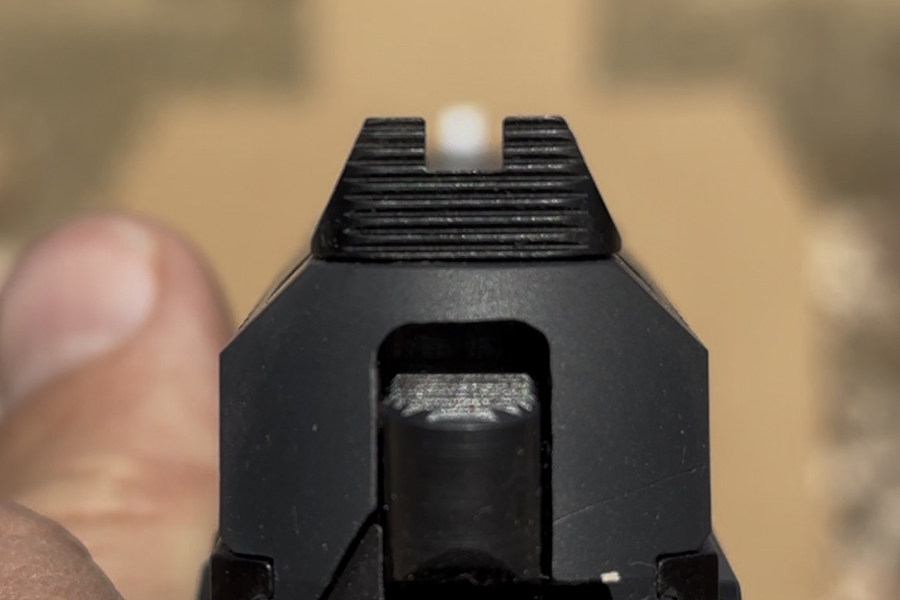 Also, thanks to your built-in central fixation bias, as long as you focus on the front sight, your eyes will naturally center that sight in the opening of the rear sight without the need for additional dots, or “U”s or whatever distracting color or design may be at the rear.