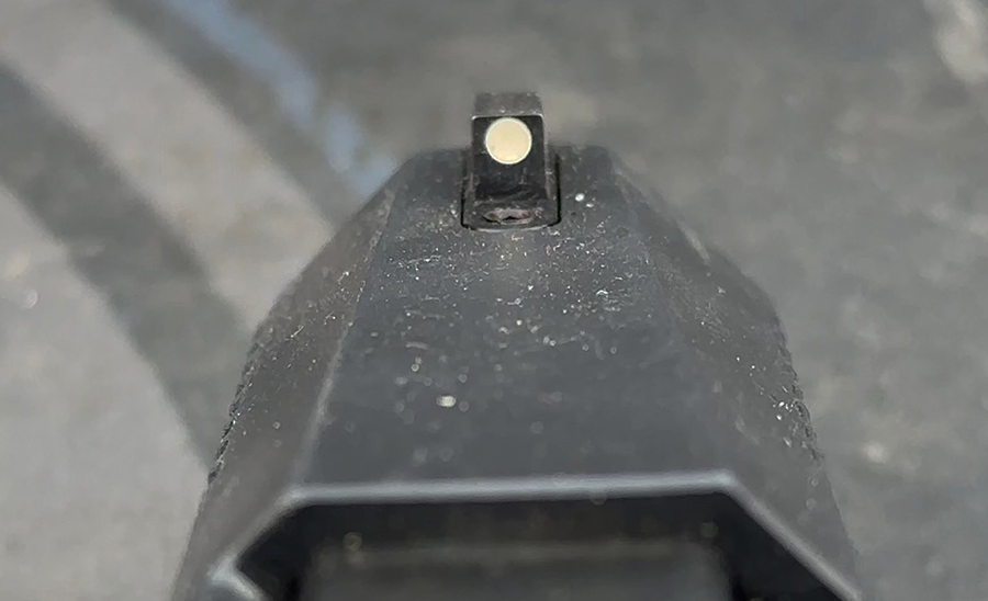 If we put more light-reflecting or, in the case of tritium, light-producing material on the rear sight, our foveal vision will be drawn to the rear which is closer to the eye. Drawing foveal vision to the rear sight is not what we should be doing.